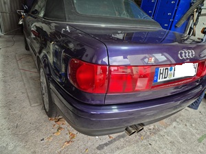 einen neuen original Audi Katalysator und eine ab Katalysator 55mm Edelstahl Sportauspuffanlage von Michael Fischer erhalten.